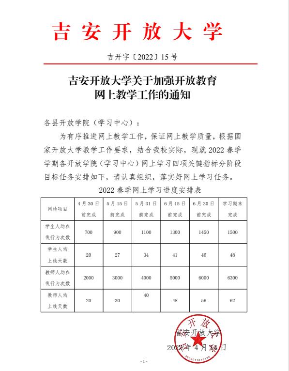 吉安开放大学关于加强开放教育网上教学工作的通知
