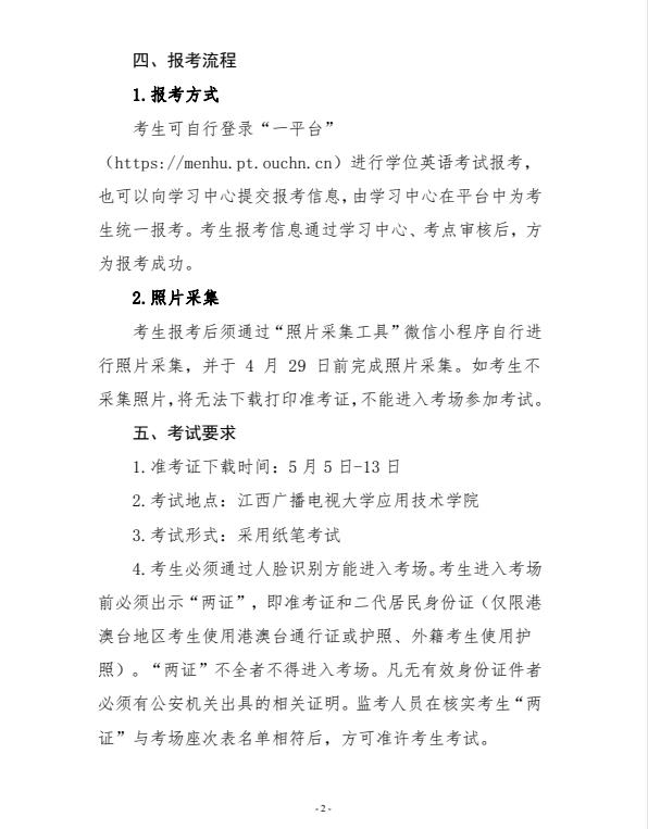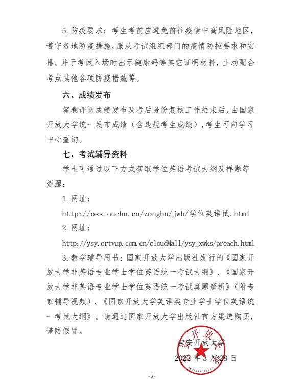 关于2022年春季学期国家开放大学学位英语考试报名的通知 发布时间:2022-03-30 C:\fakepath\通知附件.docx 上一条:吉安开放大学2022年春季校本部新生开学缴费通知 下一条:关于开展2022春专科毕业实践论文相关工作的通知 【关闭】