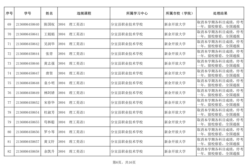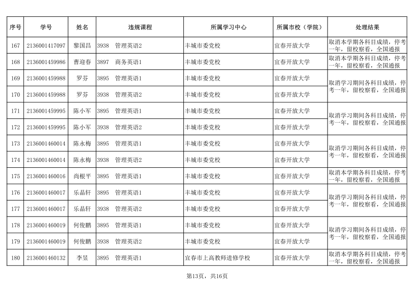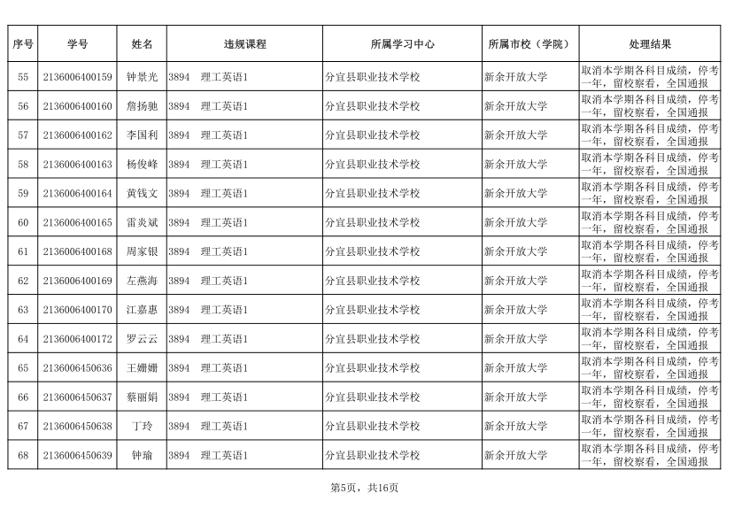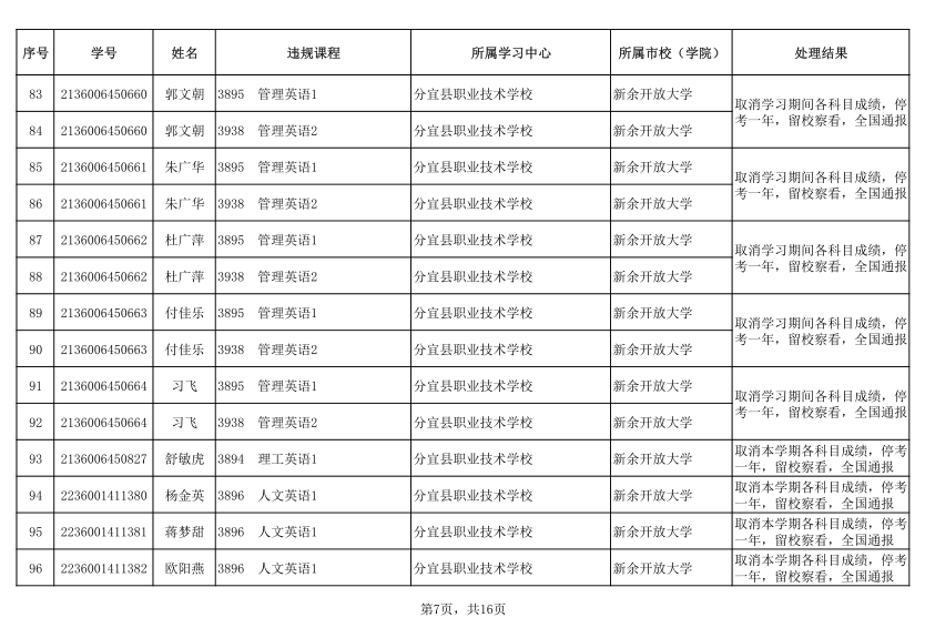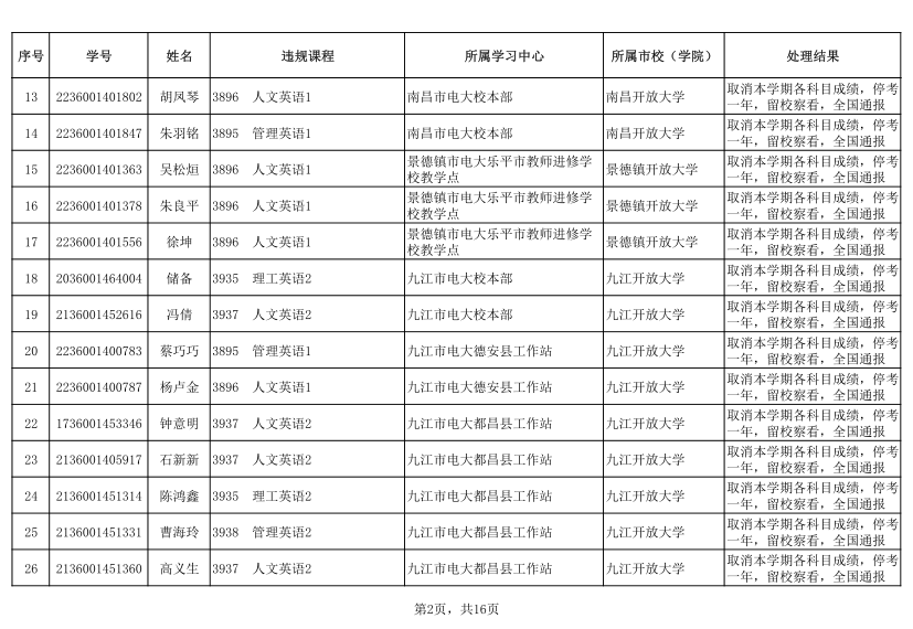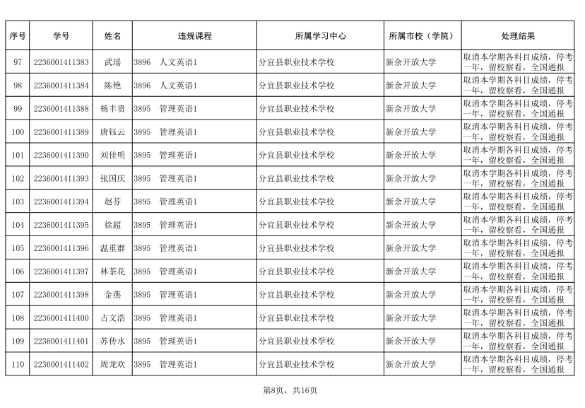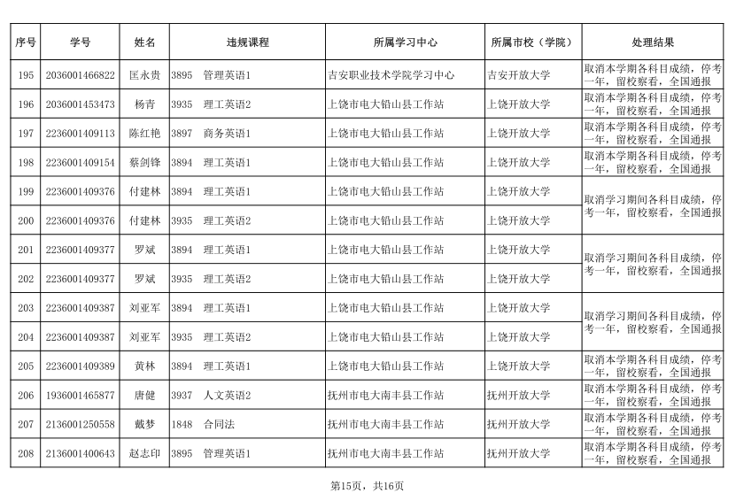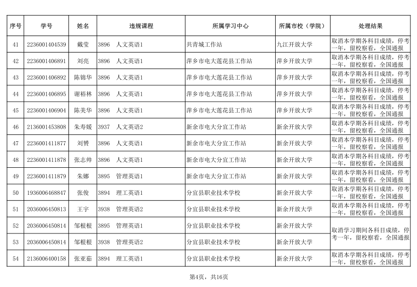 关于2022年春季学期开放教育期末考试替考学生通报 发布时间:2022-12-02 上一条:吉安开放大学顺利开展2022年秋季“一网一平台”期末考试工作 下一条:关于开展2022年综合教学检查工作的通知 【关闭】