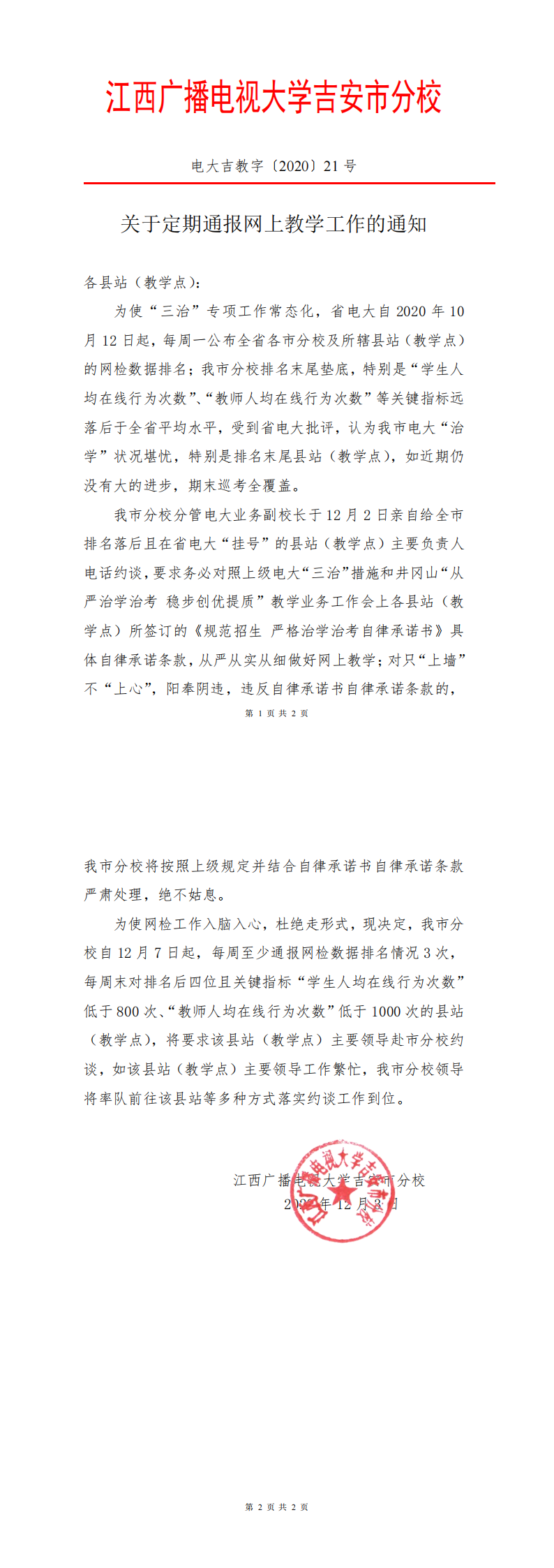关于定期通报网上教学工作的通知