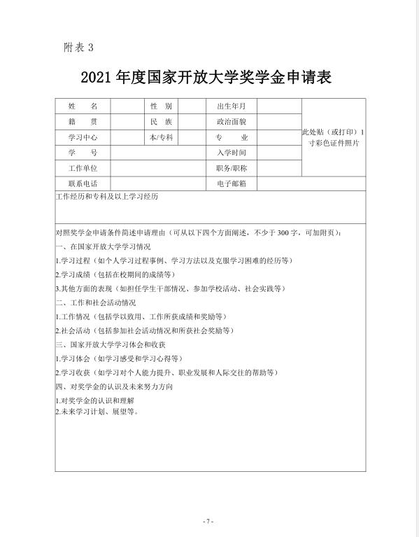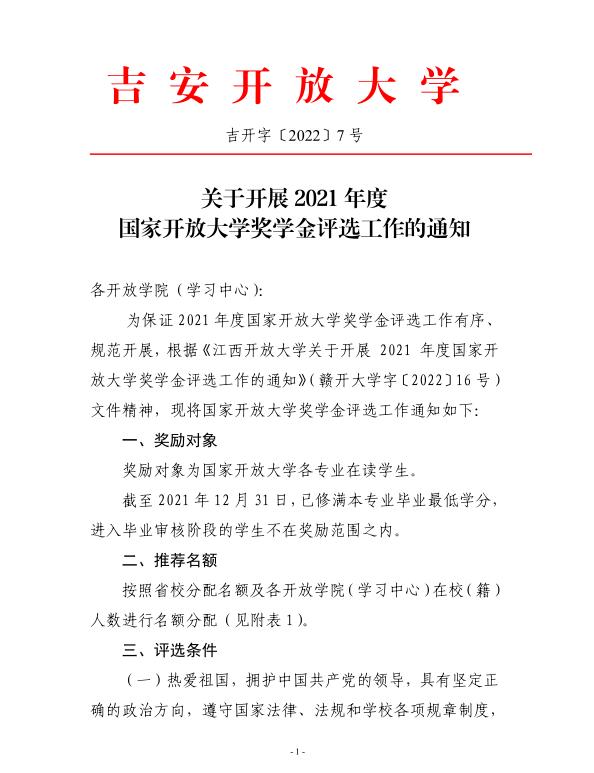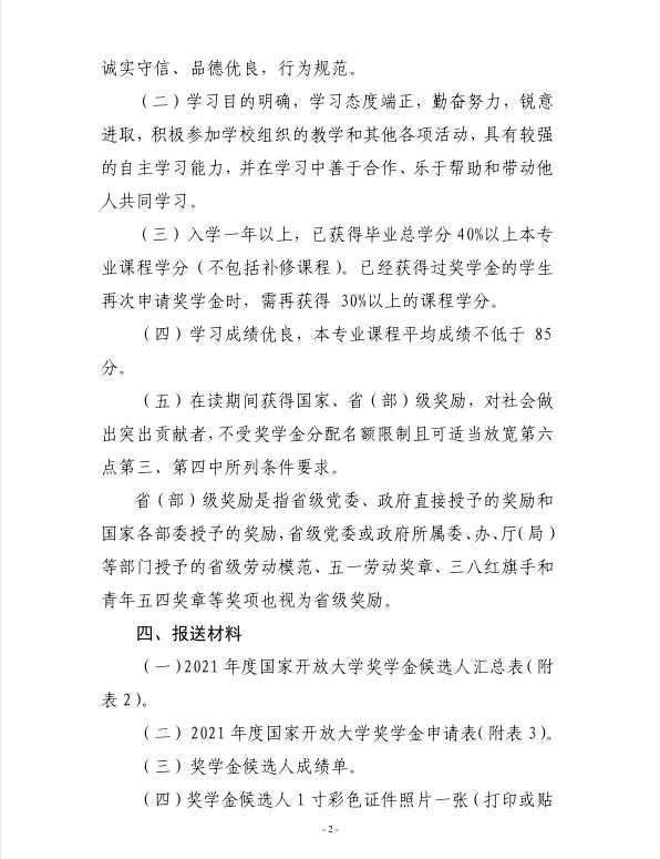 关于开展 2021 年度国家开放大学奖学金评选工作的通知