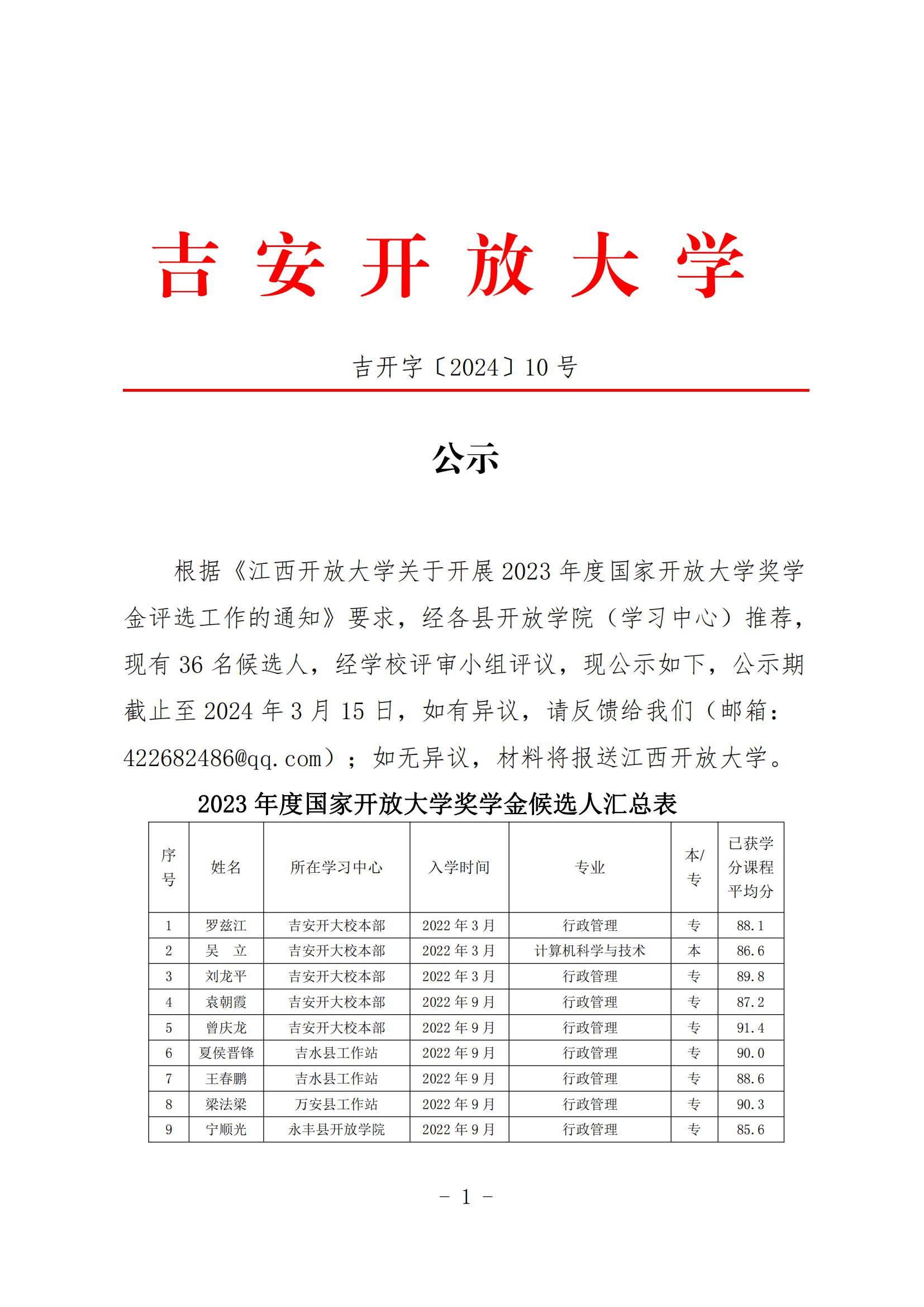 关于开展2023年度国家开放大学奖学金评选工作的通知