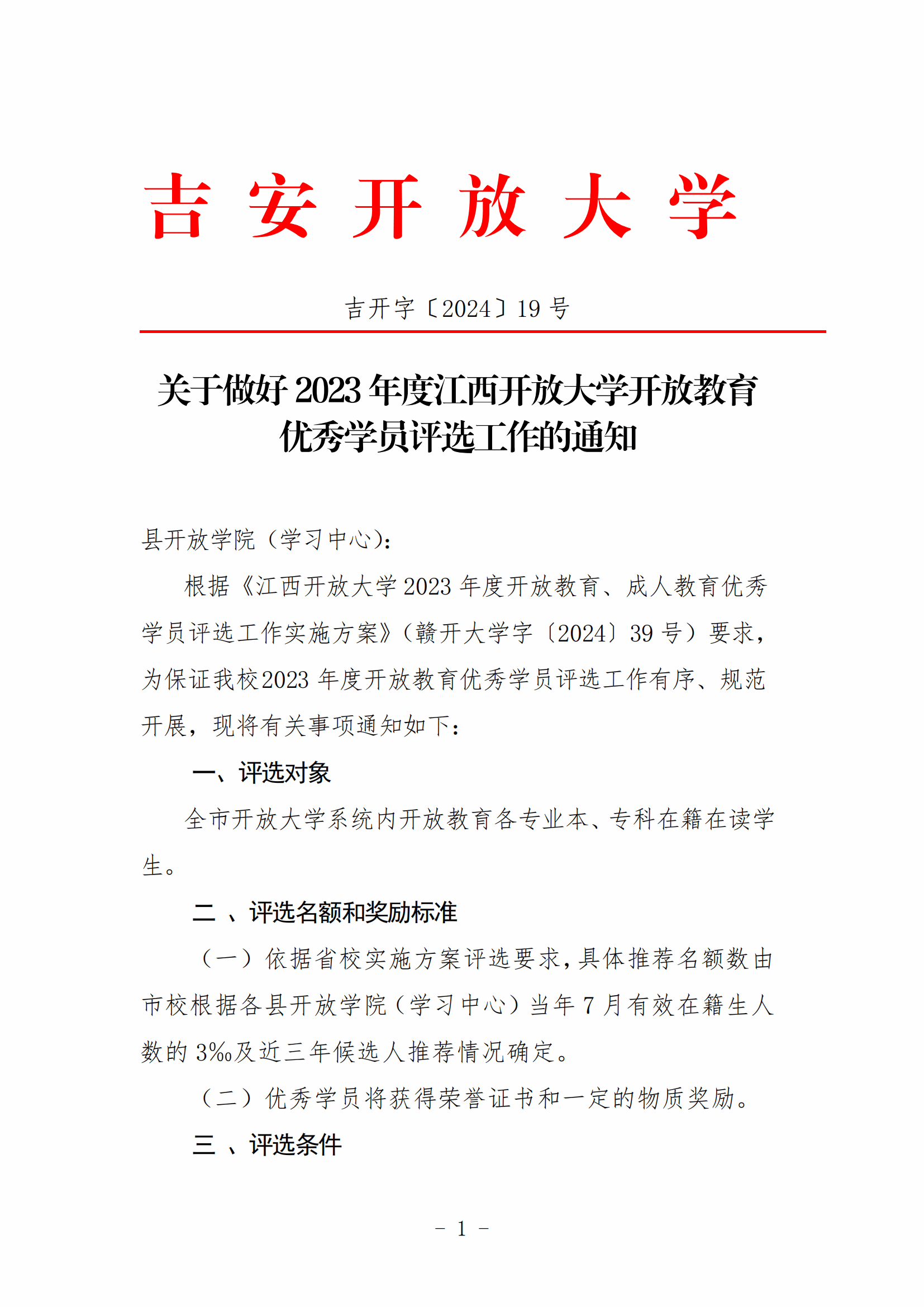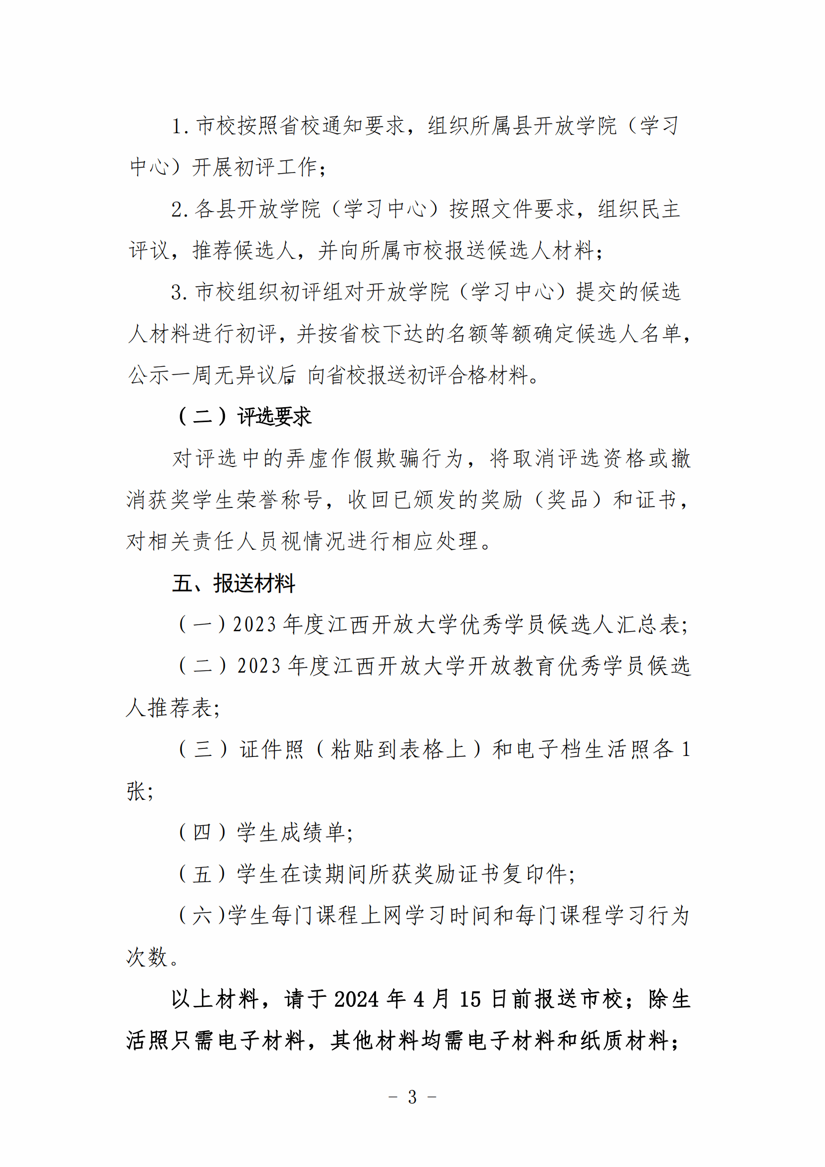 关于做好2023年度江西开放大学开放教育优秀学员评选工作的通知