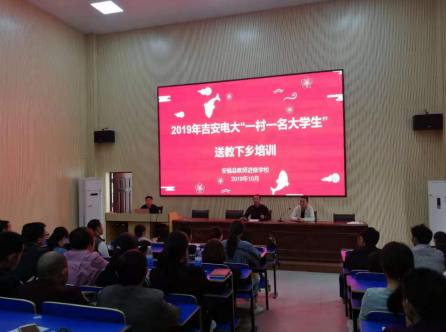 2019年10月24日上午9点,安福县2019秋吉安电大“一村一名大学生”送教下乡培训在安福县教师进修学校成功举办。出席此次培训开班的领导有安福县教师进修学校校长王见生,吉安电大龙小剑主任,安福县教师进修学校培训处主任刘文忠。
