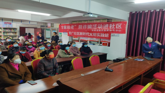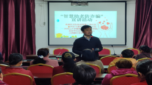 为提高我市社区老年人自我保护的意识,有效遏制诈骗活动频发的趋势。3月2日,继续教育与培训学院、吉安开放大学党支部以吉安市社区教育指导中心为平台,联合江西银行吉安青原支行为贸易广场社区的老年人开展了“智慧助老”防诈骗进社区主题活动。活动由党支部书记王志民主持。