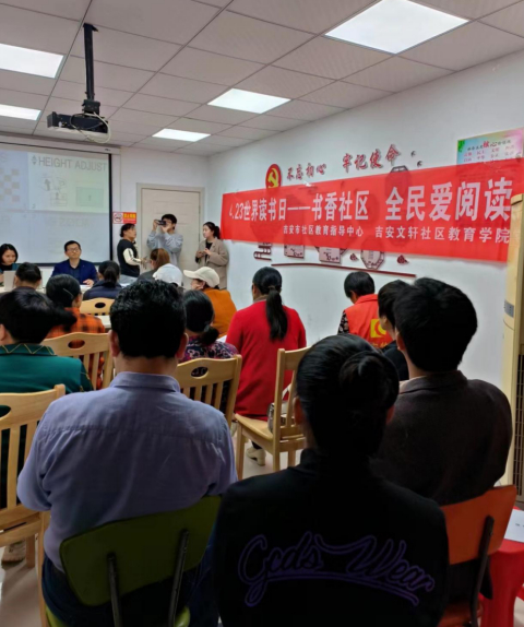 阅读是一个国家、一个民族精神成长、文明传承的重要途径。为了丰富社区居民的精神文化生活,倡导爱读书、读好书、善读书的良好氛围。4月23日,正值第28个“世界读书日”,井冈山大学继续教育与培训学院、吉安开放大学党支部以吉安市社区教育指导中心为平台,在支部书记王志民同志的带领下赴习溪桥街道友谊社区开展了“书香社区、全民爱阅读 —— 4.23世界读书日”活动。支部党员及友谊社区30余名群众代表参加了本次活动。