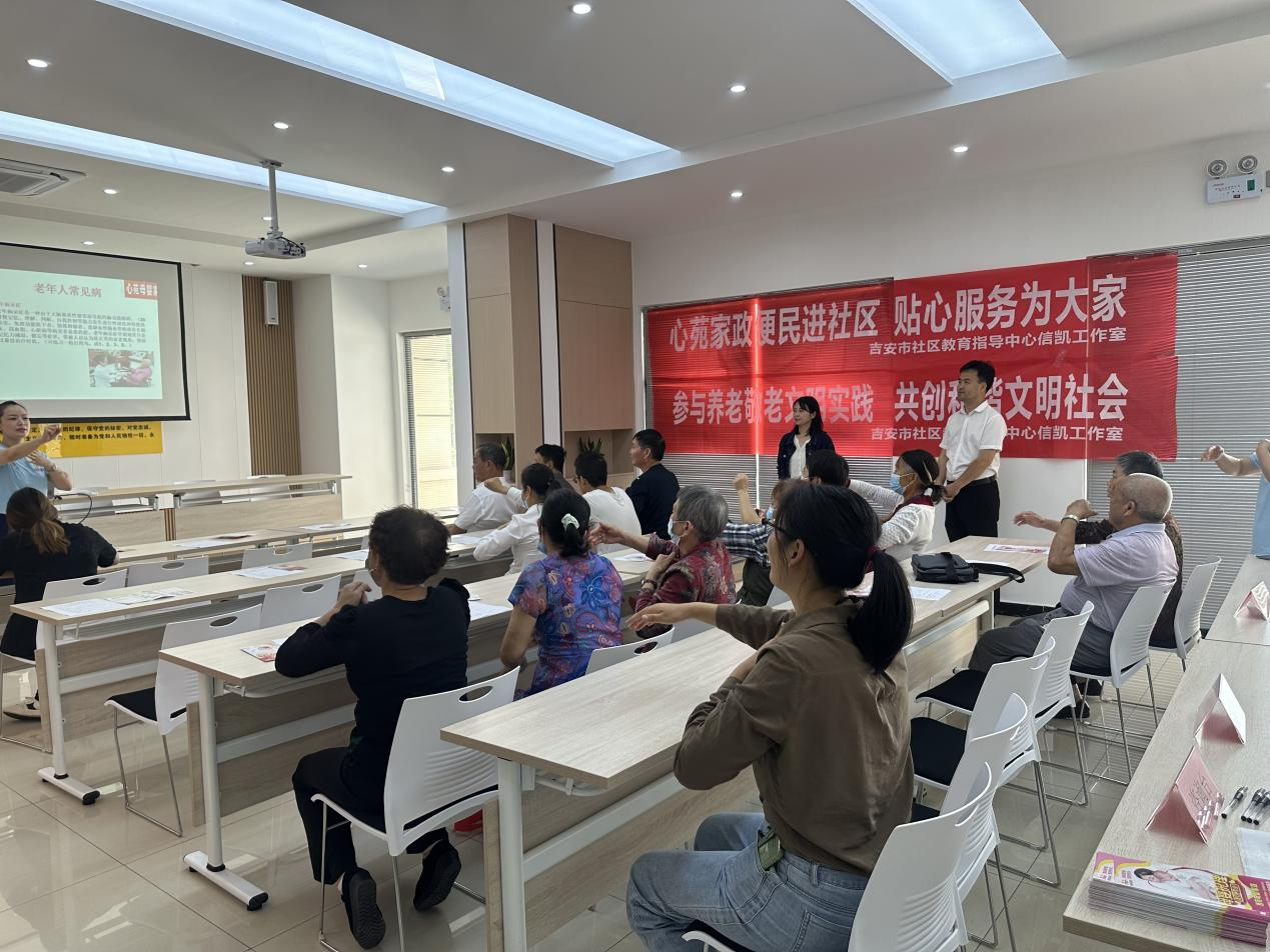 吉安市社区教育指导中心信凯工作室赴案山社区开展“养老爱老敬老助老”知识讲座公益活动 发布时间:2023-05-26 关爱老人就是关爱我们的明天,为提高老年人的生活质量,预防老年慢性疾病,5月25日,井冈山大学继续教育与培训学院、吉安开放大学党支部以吉安市社区教育指导中心为平台,在支部书记王志民同志带领下赴青原区河东街道案山社区开展“养老爱老敬老助老”知识讲座进社区公益活动。社区30余名老年人参加了本次活动。 吉安市社区教育指导中心·信凯工作室主讲老师通过生动有趣的预防老年痴呆等小游戏,调动起老年人学习兴趣,活跃现场氛围。王奶奶说,自己一把年纪了,累了一辈子,老了没人陪伴,没人说话,今天跟着大家聚在一起做做游戏,整个人像年轻了20岁。 课程结束后,信凯工作室的工作人员为现场老年人准备了免费测量血压、血糖环节。 (文:曹丽,图:雷虹英,审核:王志民) 上一条:江西开放大学思政课教师来我校赴案山社区开展学习调研 下一条:吉安市社区教育指导中心开展“书香社区、全民爱阅读 —— 4.23世界读书日”活动 【关闭】