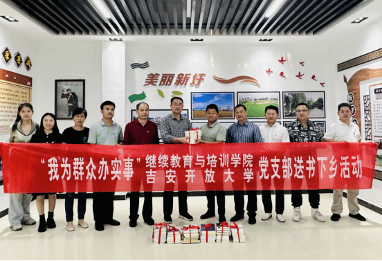 继续教育与培训学院、吉安开大院(校)长贺晓斌带领学院党员干部和教职工,前往青原区新圩镇新圩社区开展送书下乡活动,并应新圩镇政府需求开展心理健康辅导讲座。学校直属单位党委书记马于强亲临指导。