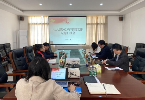 2月20日,电大部在三楼会议室召开2023年寒假工作专题汇报会,总结2023年寒假工作,部署新学期重点工作任务。院(校)长贺晓斌亲临会议指导工作,副院(校)长尹汉明和电大部全体成员参加会议。