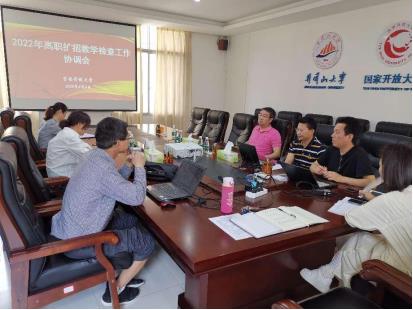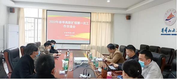 1.2022年3月28日下午,高职扩招 2022 春季教务教学工作会第一次会议在学院(校)办公楼三楼会议室召开。会议对2021年秋季期末考试进行了总结;对高职扩招教育教学检查工作内容进行了分工;明确了2019级学生毕业档案领取和填报的相关问题;要求对预计不能毕业的学生进行风险预警;确定了部门的业务工作会常态化,做到每月至少1次。