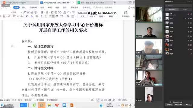 2022年9月23日,吉安开放大学召开校本部学习中心试评工作部署会,因疫情原因,会议以线上腾讯会议方式进行。副院长尹汉明,相关部门负责人,电大部全体成员参会。