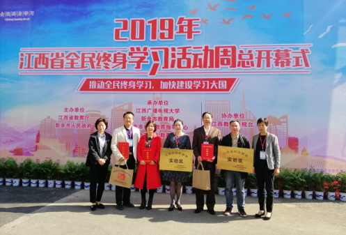 吉安市社区教育指导中心参加2019年江西省全民终身学习活动周总开幕式 发布时间:2019-11-19 11月15日, 2019年江西省全民终身学习活动周总开幕式在新余市举行。我市教体局副局长胡晓燕,吉安电大副校长、吉安市社区教育指导中心负责人万晓兵参加了会议。 开幕式上,正式启动了江西终身学习资源库,并表彰了一批2019年度国家级和省级百姓学习之星、终身学习品牌项目与优秀成人继续教育院校。我市吉安市老年大学荣获全国“优秀成人继续教育院校”,陈娟琴荣获国家级“百姓学习之星”,吕强荣获省级“百姓学习之星”;吉州区获国家级社区教育实验区,青原区、遂川县获省级社区教育实验区。 上一条:2019秋论文指导安排及进度 下一条:吉安市社区教育指导中心到未成年人心理健康辅导站调研 【关闭】