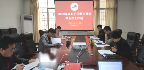 4月14日下午,吉安电大召开2020年高职扩招新生开学第五次工作会,校长贺晓斌,副校长万晓兵、王志民,井冈山大学教务处副处长黄立明,成教部、电大部相关人员参加了会议。