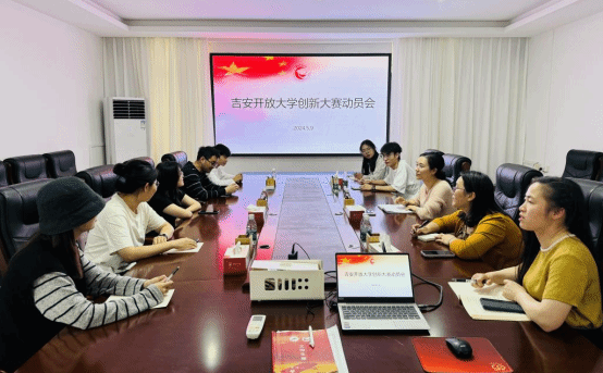 5月9日,吉安开放大学召开中国国际大学生创新大赛(2024)动员部署会。吉安开放大学副校长谢璐到会并发表讲话,项目团队指导教师及学生、电大部相关工作人员参会,会议由电大部主任左丁丁主持。