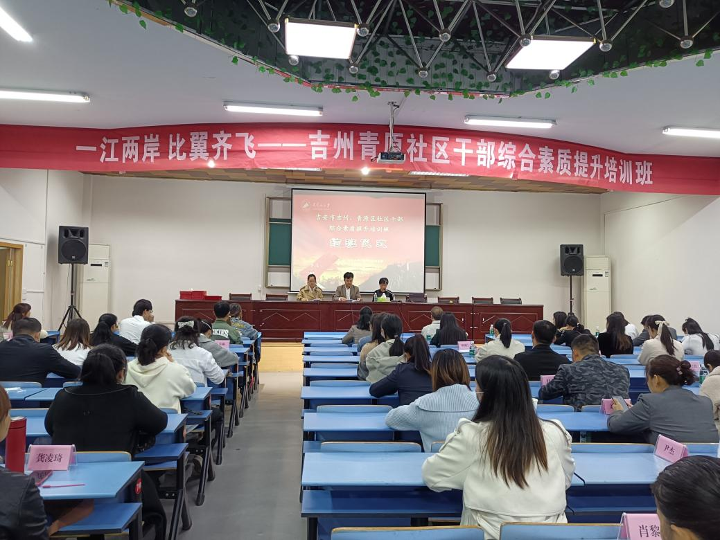 10月29日上午,吉州青原社区干部综合素质提升培训班结班式在继续教育与培训学院报告厅举行。井冈山大学继续教育与培训学院副院长王志民作结班讲话,政务督导员万晓兵主持结班式。