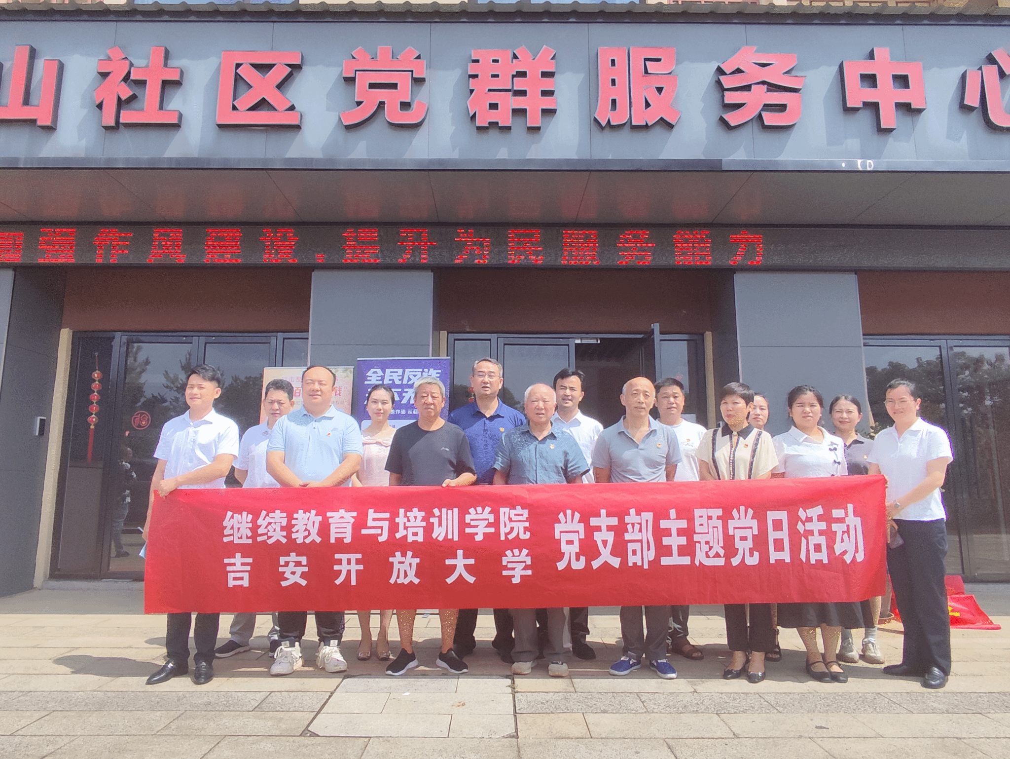 在“七一”建党节到来之际,为深入贯彻中央八项规定精神学习教育,6月25日上午,井冈山大学继续教育与培训学院、吉安开放大学党支部依托吉安市社区教育指导中心平台,联合图书馆党支部并携手江西银行,走进案山社区开展“送教进社区”主题党日活动,以实际行动践行全民终身学习理念、构建和谐社区。继续教育与培训学院、吉安开放大学党支部书记贺晓斌带领支部全体党员参与活动,案山社区40余名党员同志及社区居民到场参加。