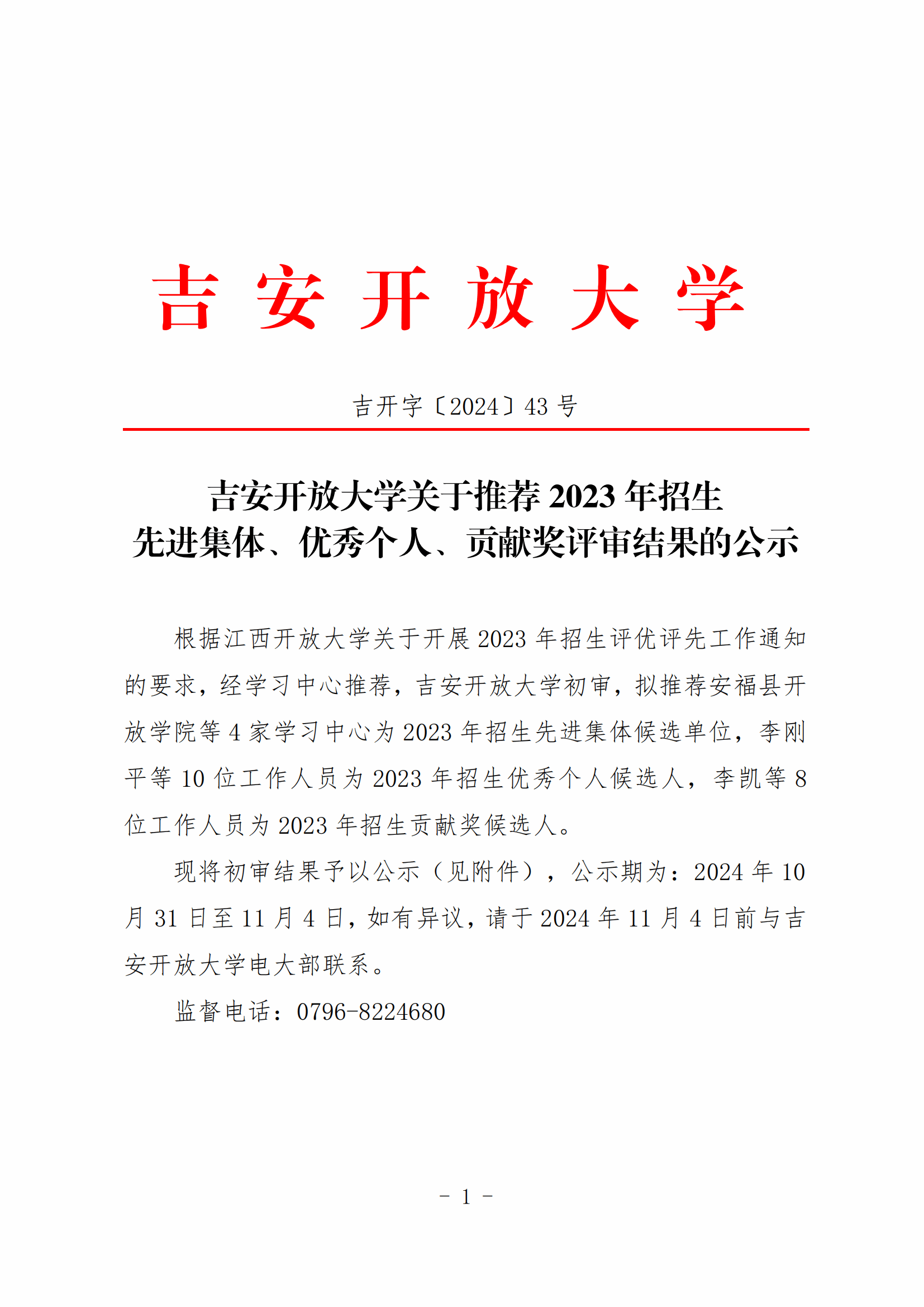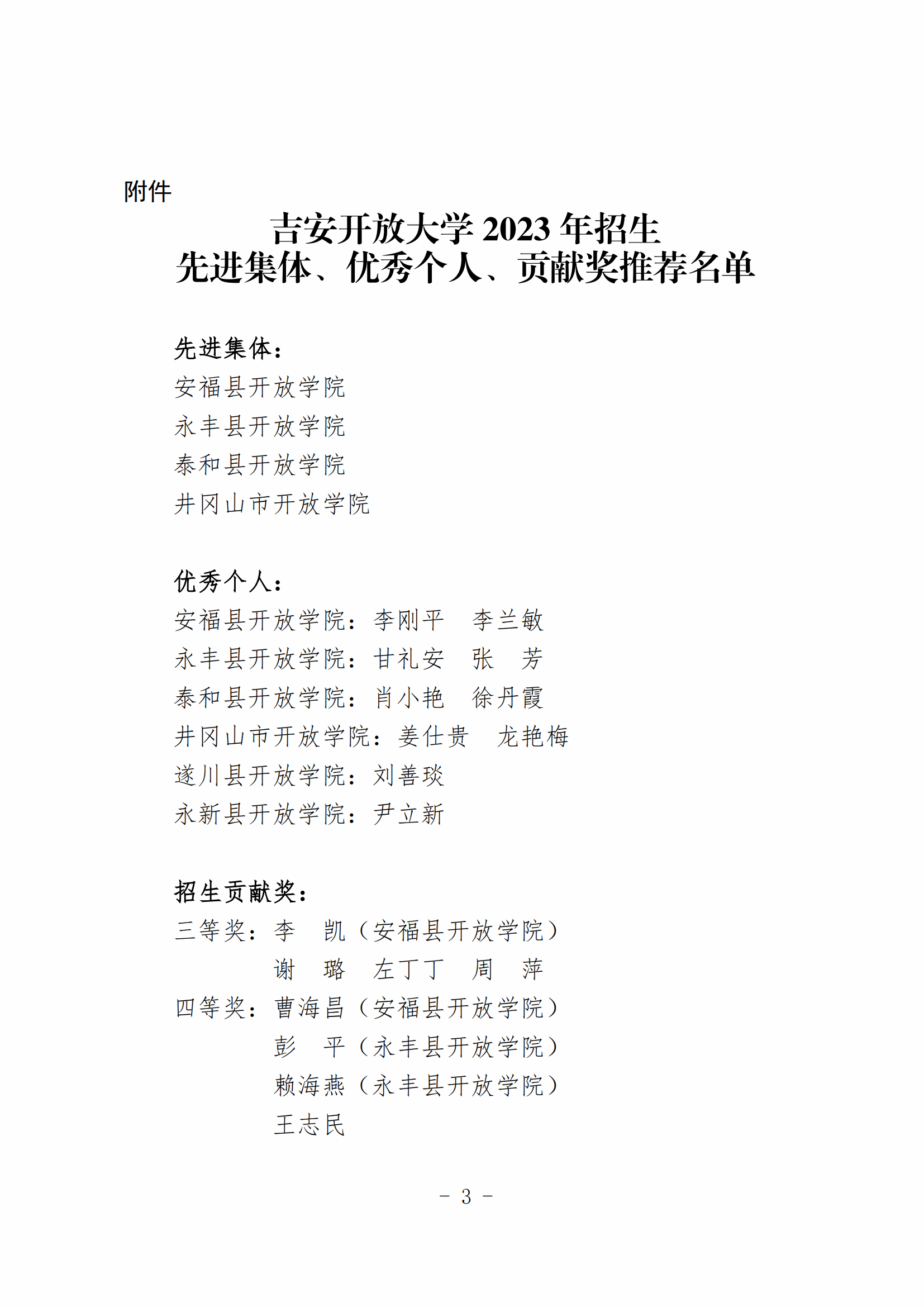 吉安开放大学关于推荐2023年招生先进集体、优秀个人、贡献奖评审结果的公示
